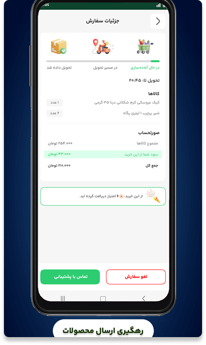 • ارسال نوتیفیکیشن و پیامک وضعیت سفارش